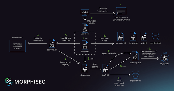 De forma similar, la última secuencia de ataque asociada con ValleyRAT implica el uso de un sitio web falso de Google Chrome para engañar a los objetivos y hacerles descargar un archivo ZIP que contiene un ejecutable ("Setup.exe").