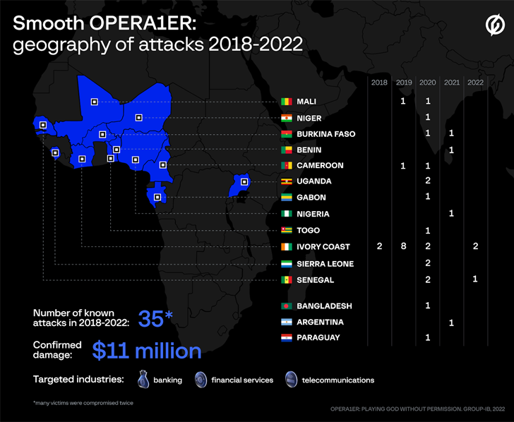 A principios de enero, Symantec de Broadcom dijo que descubrió una serie de ataques dirigidos contra el sector financiero en países francófonos ubicados en África desde al menos julio de 2022 hasta septiembre de 2022. La compañía dijo que la actividad, que rastrea como Bluebottle, tiene un grado de cruce con OPERADOR.